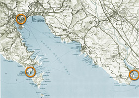 von der benachbarten Bucht von La Spezia. Durch den Ausbau von Hafen und